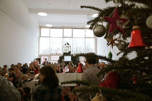 Unser erstes Weihnachtsfest in der Juliusstraße war gleich ein ganz Besonderes. Die ganze Piazza platzte aus allen Nähten, denn unsere Farbenkinder kamen meist in Begleitung der ganzen Familien mit Geschwistern und Großeltern. So wie wir in diesem Jahr Ramadan feierten, war mit dem Weihnachtsfest nun ein klassisches christliches Fest an der Reihe. Die Theaterpädagogin Dörte Bald trug die Weihnachtsgeschichte der Geburt Jesu mit Hilfe eines Schattentheaters vor. Musikalisch eingerahmt wurde der gesamte Abend von unseren lieb gewonnen Freund*innen vom Sinfonieorchester Wuppertal. Und das von den Kindern erdachte Weihnachtslied „Erdbeerweihnachtspudding“ wurde vor den staunenden Eltern uraufgeführt.