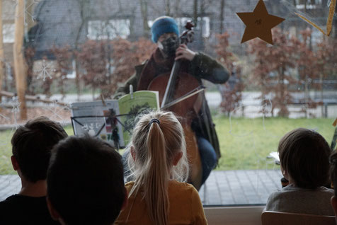 Zu einigen Morgenkreisen waren Adelheid Riehle und ihre Mitmusiker*innen vom Sinfonieorchester dieses Jahr bereits zu Gast. Zum ersten mal in diesem Jahr besuchten uns unsere Musiker-Freund*innen jedoch vor einigen Wochen zu einem Abholkonzert. Die vier Musikanten spielten während der Freitags-Abholzeit in unserer Piazza für unsere Farbenkinder und ihre Familien. Die Kinder tanzten, die Eltern lauschten – alle waren begeistert. Wir freuen uns schon jetzt auf den nächsten Besuch von Adelheid und ihren Kolleg*innen.