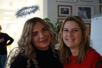 Ein Weihnachtsfest der besonderen Art: Da wir teamintern gerne mal Karaoke singen, entstand bereits vor längerer Zeit schon die Idee, auch unsere Familien an diesem wunderbaren Quatsch einmal teilhaben zu lassen. In zugelosten Tandems – jeweils ein Elternteil und ein/e Erzieher*in – wurde in der Piazza vor unserem Weihnachtsbaum laut und voller Freude gesungen: Weihnachtslieder, Johnny Cash, Wir sind Helden – alles war erlaubt. Und jeder Beitrag wurde von allen beklatscht und gefeiert. Irgendwann übernahmen die Kinder die Mikrofone, sangen die Farbenkinder-Lieder, Disney-Songs und „Schneeflöckchen, Weißröckchen“. Bei Kakao und Keksen war dieses Fest für alle ein vorweihnachtliches Highlight.